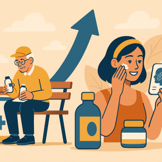 根據官方調查,20多歲的年輕族群中,有9成自覺出現「初老」徵兆,6成認為30歲前就應開始抗老保養。這代表消費起點不再是35歲甚至40歲,而是提前到剛踏入社會的年輕人,延長了市場的消費壽命。