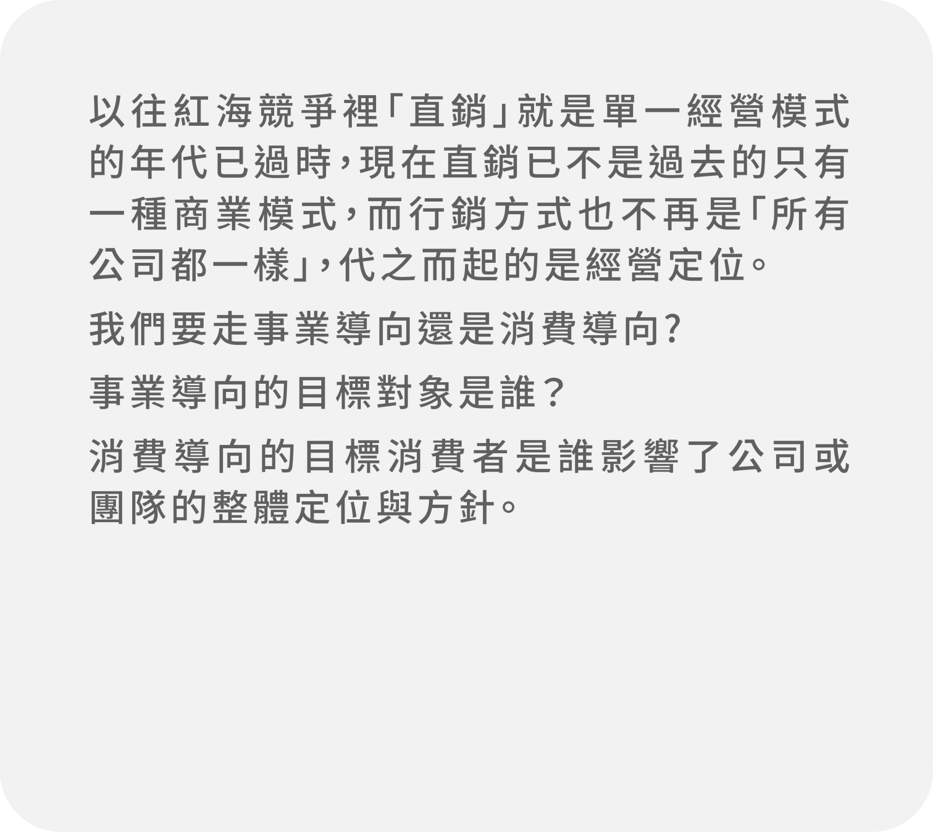 我們提供多元通路的直銷企業與團隊的顧問輔導服務,幫助直銷公司、直銷團隊,制定多元通路經營策略,解決在經營過程中遇到的各類挑戰。